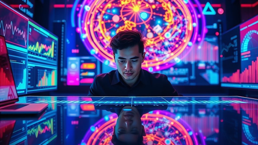 AI personalizes visualization by analyzing your user preferences and behavior patterns. It adapts the data visuals to highlight what matters most to you, making insights more relevant and engaging. This targeted approach boosts your user engagement because the content feels tailored and intuitive. By continuously learning from your interactions, AI guarantees that each visualization aligns with your evolving needs, creating a seamless, personalized experience that keeps you invested and informed.