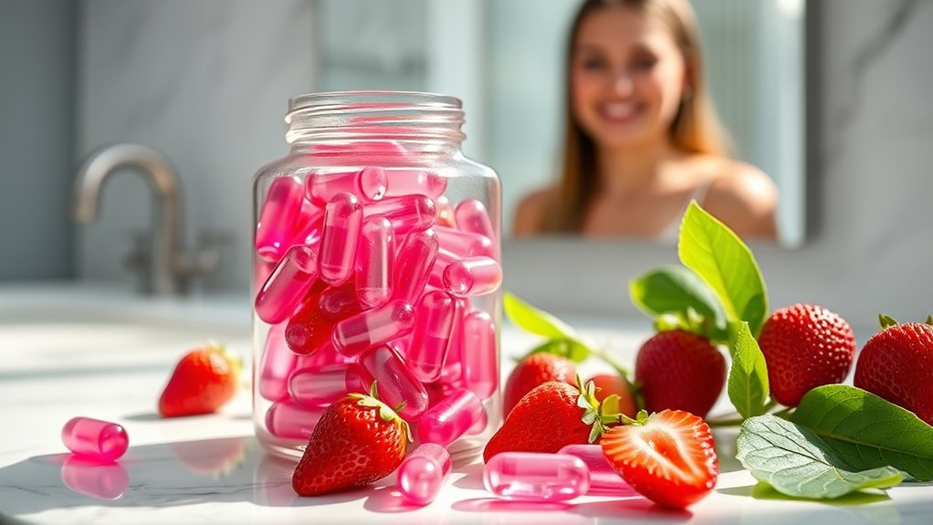 Think of plant-based sources and vegan alternatives as the artisans crafting a sturdy bridge for your skin. While they don’t contain collagen itself, they supply nutrients like vitamin C, amino acids, and antioxidants that boost your body’s collagen production. These options can be effective, helping your skin stay firm and youthful. So, yes, plant-based collagen alternatives can work, but they primarily support your body’s natural collagen-making process rather than providing collagen directly.