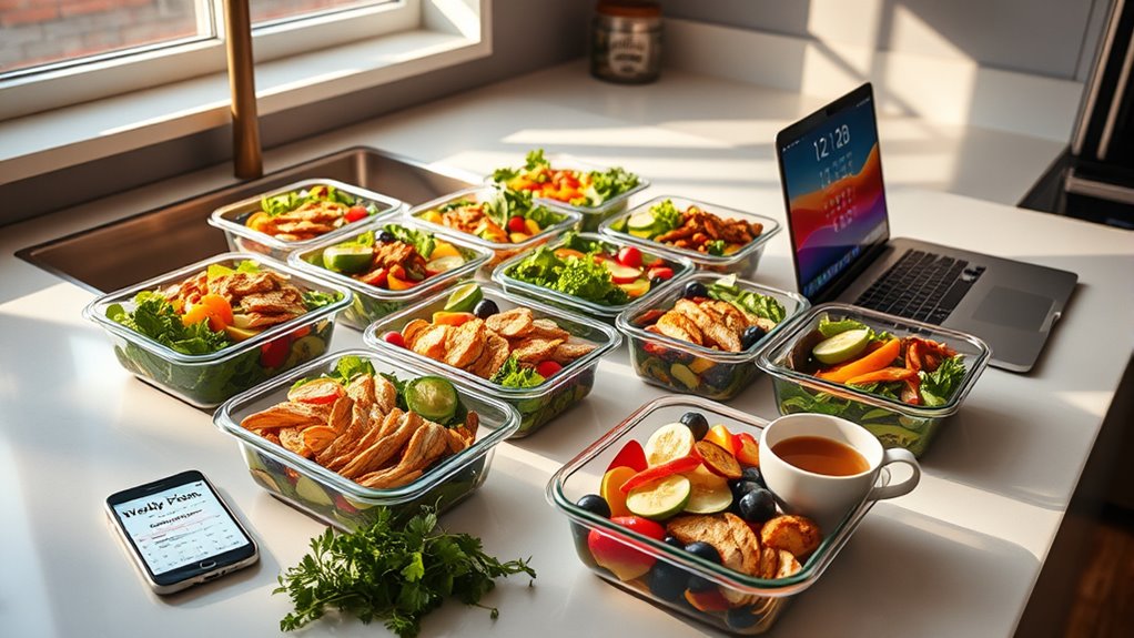 With a solid meal plan in place, your busy schedule becomes a well-choreographed dance rather than a chaotic scramble. Think of it as steering a steady ship through busy waters—you stay on course and avoid unnecessary storms. When you plan ahead, you’re always prepared, making mealtime smooth sailing. So, embrace the rhythm of prep, and let your organized approach turn hectic days into calm, delicious waters. Your stress-free mealtime journey is just a plan away.