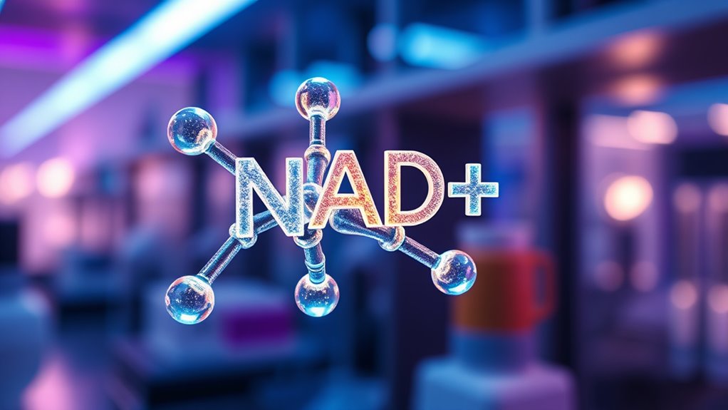 You’ll find that NAD+ interacts with other longevity-promoting compounds through synergistic effects, enhancing their benefits. For example, combining NAD+ precursors with resveratrol or metformin can boost cellular health more effectively than using either alone. These compound interactions optimize energy production and DNA repair, amplifying longevity benefits. Always consider how these interactions work together, and consult with a healthcare professional to tailor a regimen suited to your individual needs.