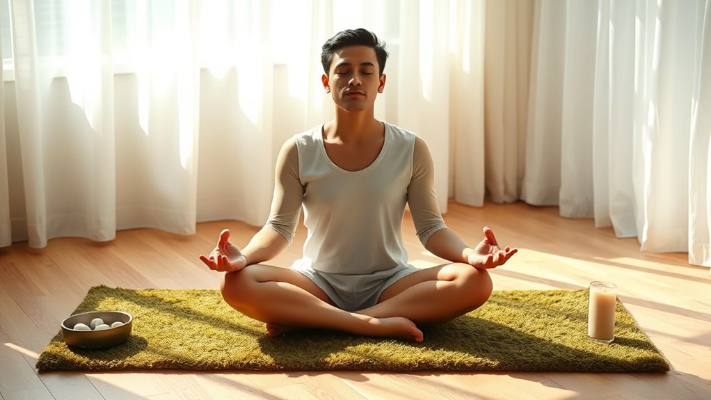 Many people find meditation beneficial, but they often encounter challenges that can make sticking with the practice difficult. One common obstacle is maintaining focus, especially when your mind races with thoughts or distractions. To counter this, you can use mindful breathing as an anchor. Instead of fighting your thoughts, gently bring your attention back to your breath, noticing each inhale and exhale. This simple act trains your mind to stay present and reduces mental clutter over time. Mindful breathing not only calms your nervous system but also enhances your ability to concentrate during meditation sessions. Additionally, paying attention to your posture alignment plays a *vital* role. If you sit with a slouched back or tense shoulders, it becomes harder to relax and stay alert. Sit upright with your spine straight but not stiff, ensuring your head is aligned over your shoulders. This posture helps facilitate proper breathing, allowing oxygen to flow freely and preventing discomfort that might distract you. When your posture is correct, you’re more likely to feel comfortable and focused, making it easier to settle into a meditation routine.