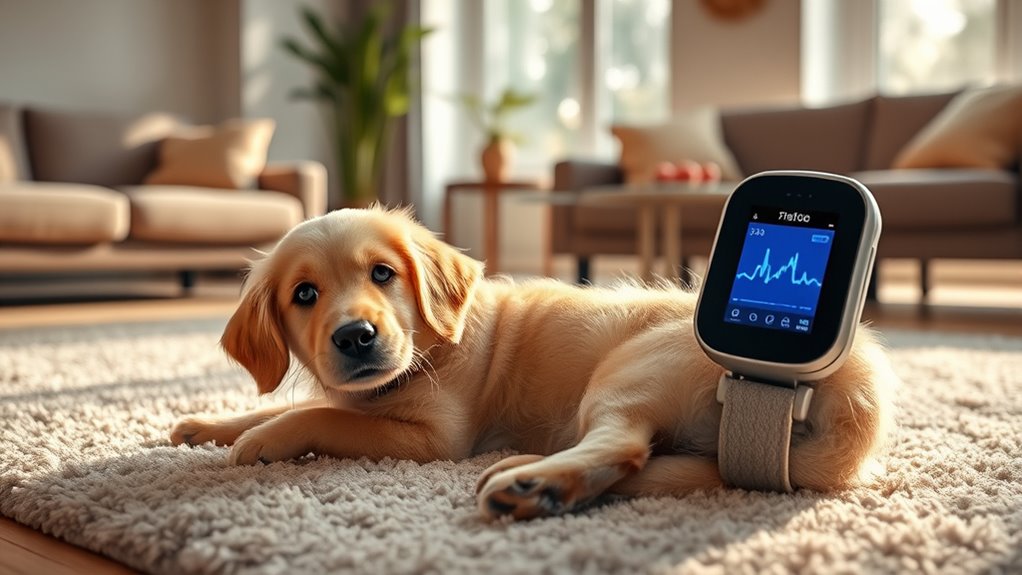 Pet health monitoring devices are generally quite accurate, but sensor accuracy can vary depending on the brand and model. You should trust the device’s readings as a helpful guide, but remember they’re not perfect. Device reliability depends on quality construction and regular updates. Always combine the data with your veterinarian’s advice to guarantee your pet’s health is properly managed and monitored.