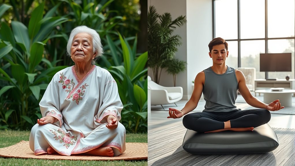 Modern meditation methods can be just as effective as traditional ones, depending on your consistency and intention. The effectiveness comparison often hinges on your personal experience and how well the technique resonates with you. While some may question technique authenticity, many modern approaches incorporate proven principles from traditional practices, making them accessible and impactful. If you stay committed, you’ll likely find both methods beneficial for your mental clarity and stress reduction.